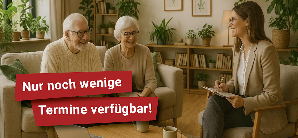Vereinbaren Sie noch heute Ihren Beratungseinsatz mit unseren Partnern und profitieren Sie von unserem Expertenwissen. Gemeinsam sorgen wir dafür, dass Ihr Pflegegeld gesichert wird. Wir organisieren alle Formalitäten für ihre Pflegekasse kostenfrei , damit Sie Ihre Lebensqualität bewahren und sorgenfrei in die Zukunft blicken können.